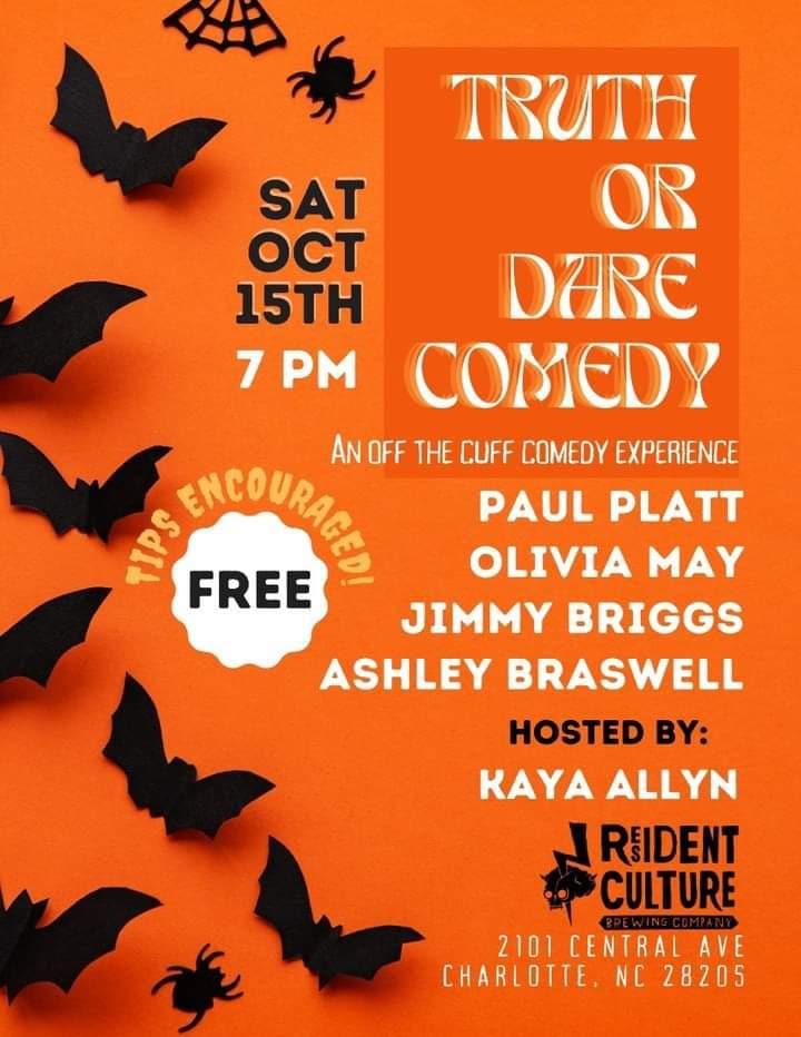 Come watch some of Charlotte’s best stand-up comedians answer your embarrassing truths and hilarious dares live on stage. Hosted by Kaya Allyn, this will be a night of shenanigans and once in a lifetime (unscripted) stories.